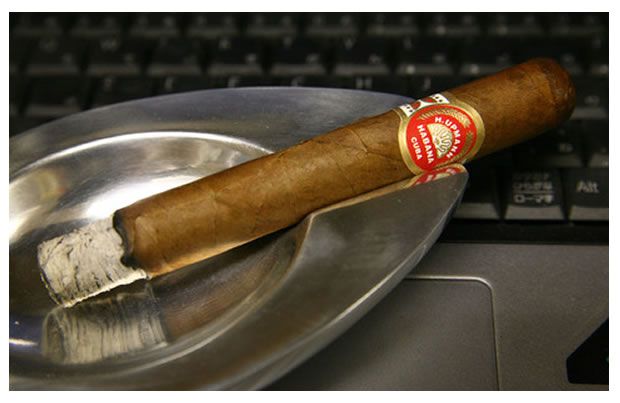 先にご紹介した葉巻は、品質が良い物ですが、一般的な葉巻は3㎝程度になったら、灰皿で軽く葉巻を指でトント ンと叩いて、その振動で灰を落とすのが一般的です。